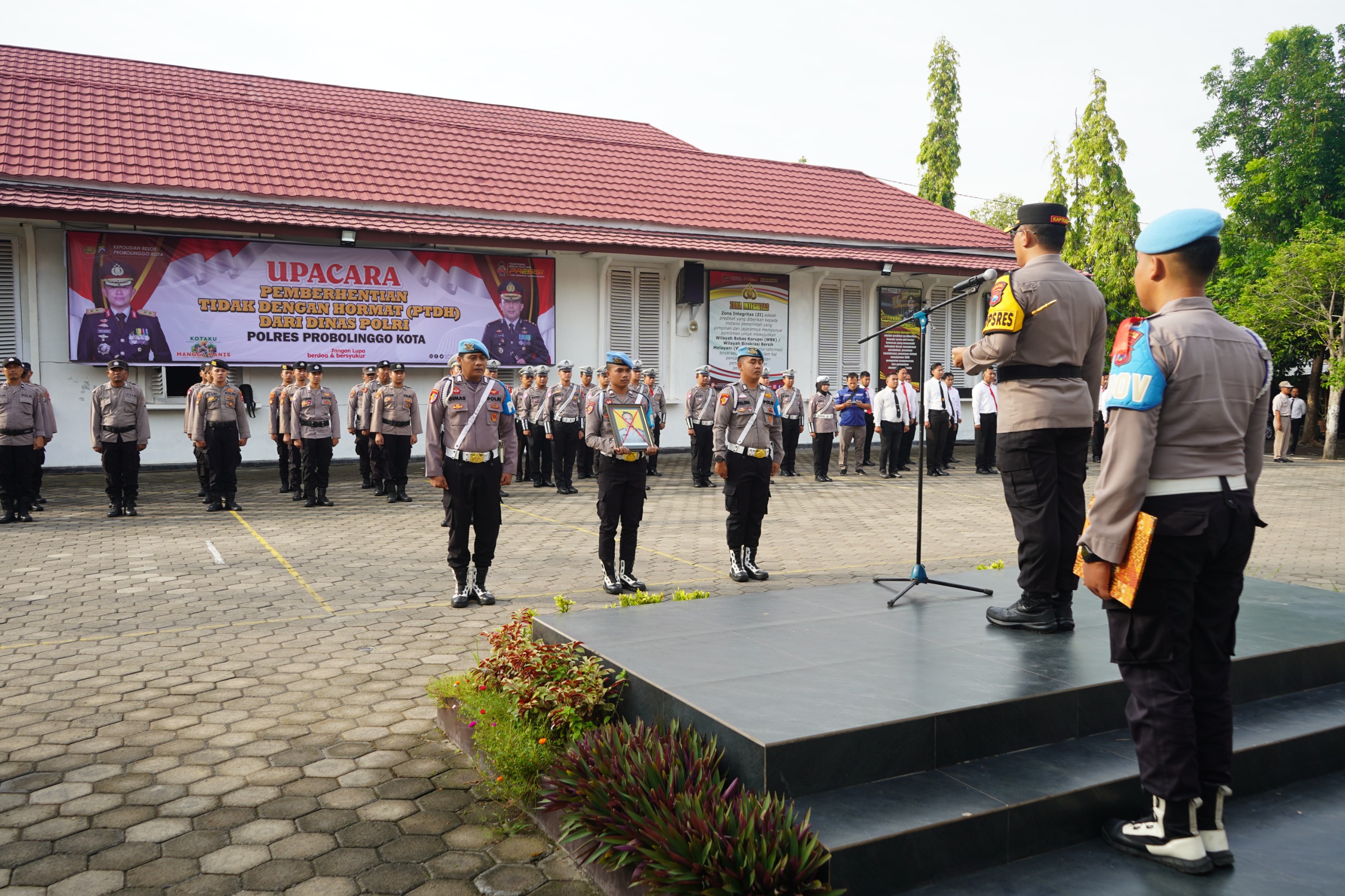 Upacara PTDH tersebut dipimpin langsung oleh Kapolres Probolinggo Kota, AKBP Oki di Lapangan Apel Mapolres Probolinggo Kota.
