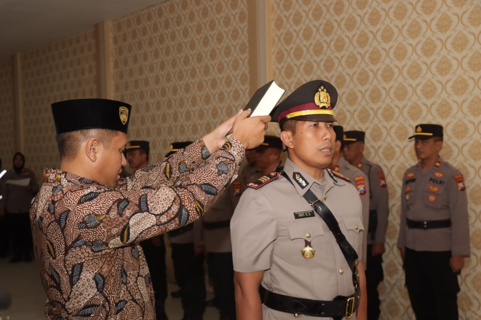 Dalam upacara serah terima jabatan tersebut diisi dengan penandatanganan berita acara Sertijab, pengambilan sumpah dan pakta integritas serta pengambilan sumpah jabatan oleh Kapolres Sampang AKBP Hendro Sukmono.