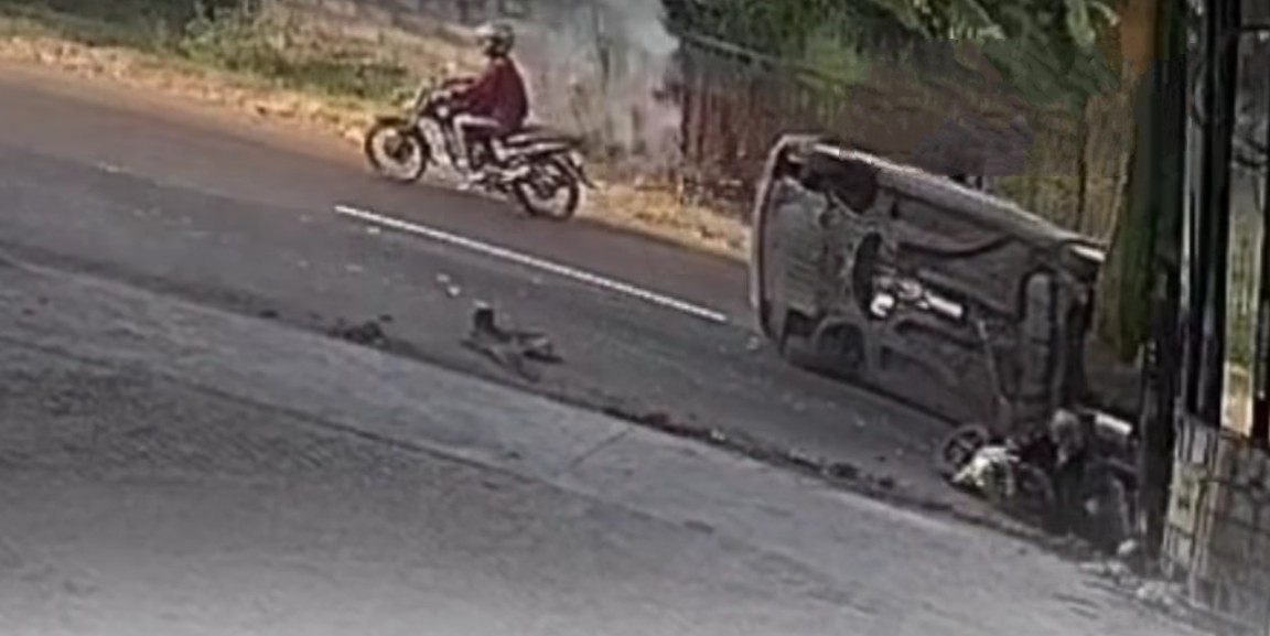Dalam video tersebut. di belakang mobil juga ada sepeda motor yang dikendarai dua orang juga terlibat dalam kecelakaan.
