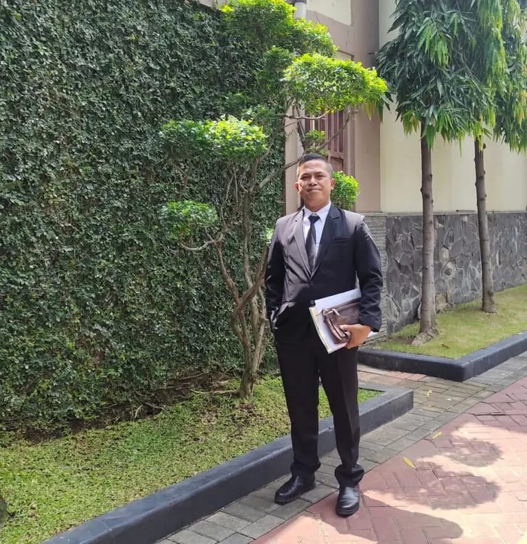 Hadi Purwanto selaku Direktur Lembaga Kajian Hukum (LKH) Barracuda dan Lembaga Bantuan Hukum (LBH) Djawa Dwipa mengantarkan surat pemberitahuan kepada seorang Kepala Sekolah MI di Kota Mojokerto.