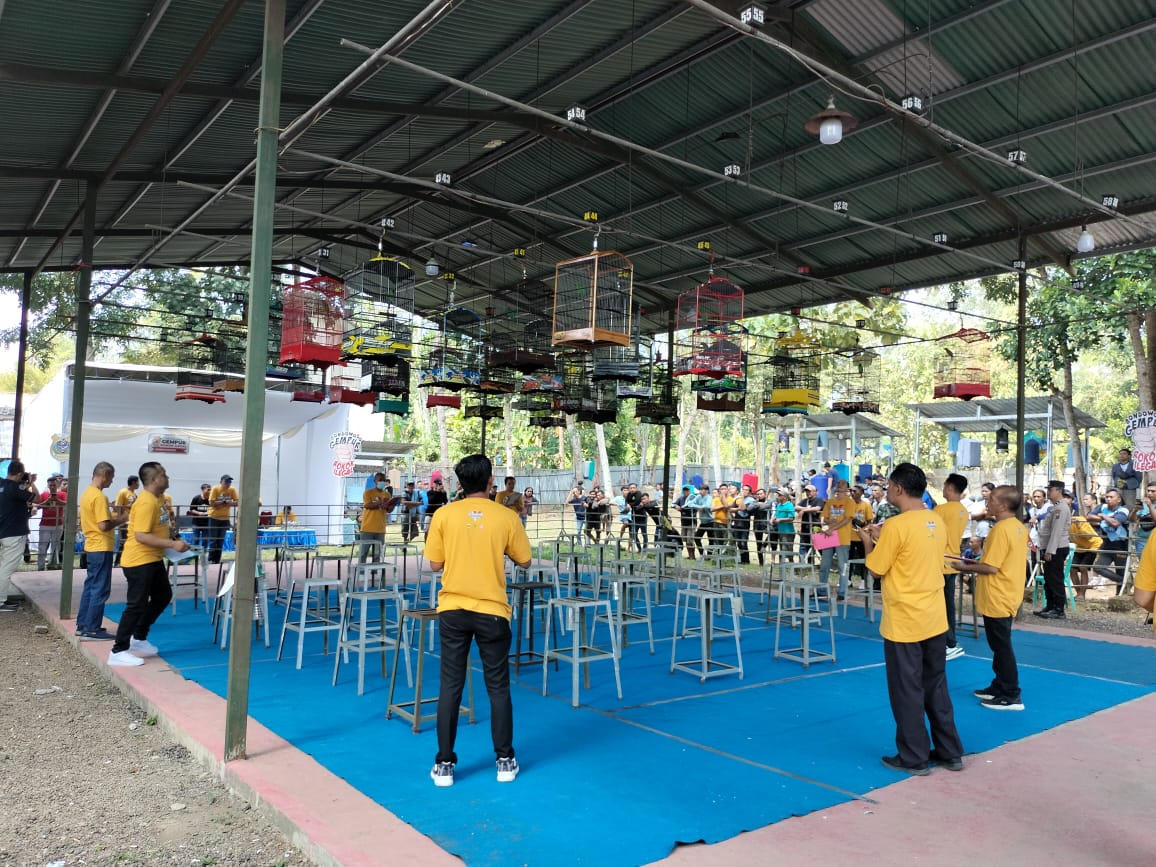Ratusan peserta menggantang burung untuk menunjukkan kepada aparat juri kemampuan berkicaunya. Riuh siulan dan lambaian tangan para peserta pun mengiring saat para juri melakukan penilaian.