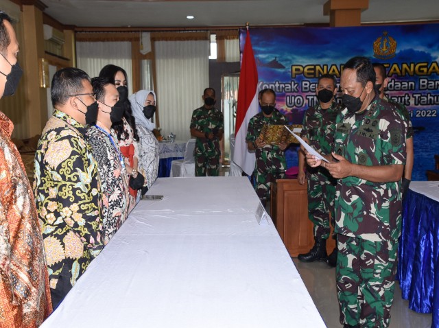 Kegiatan penandatanganan kontrak kerjasama ini dilaksanakan secara serentak di lingkungan TNI AL diikuti oleh 32 Satuan Kerja dengan jumlah kontrak sebanyak 173 kontrak yang telah melalui proses lelang sebagaimana diatur dalam Peraturan Presiden Nomor 12 tahun 2021 tentang Pengadaan barang dan jasa pemerintah. Terkait dengan situasi pandemi, maka penandatanganan kontrak dilaksanakan secara langsung di auditorium Denma Mabesal diikuti oleh 14 satker. Sedangkan 18 Satker di luar Mabesal salah satunya Kodiklatal dengan pelaksanaan penandatanganan dilaksanakan secara virtual di Satker masing-masing dengan jumlah kontrak sebanyak 99 kontrak.