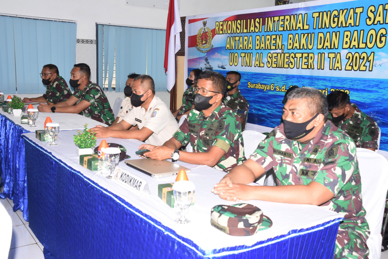 Brilian°Surabaya, Prajurit Komando Pembinaan Doktrin Pendidikan dan Latihan TNI AL (Kodiklatal) mengikuti Rekonsiliasi Internal Daftar Isian Pelaksanaan Anggaran (Dipa) petikan kewenangan Pusat dan Daerah Satker Unit Organisasi (UO) TNI AL Semester II TA 2021 secara virtual yang dilaksanakan di Aula Bhineka Wirya Pusat Pendidikan Bantuan Administrasi (Pusdikbanmin) Kesatrian Kodiklatal Bumimoro Surabaya, Kamis, (6/1/2022).