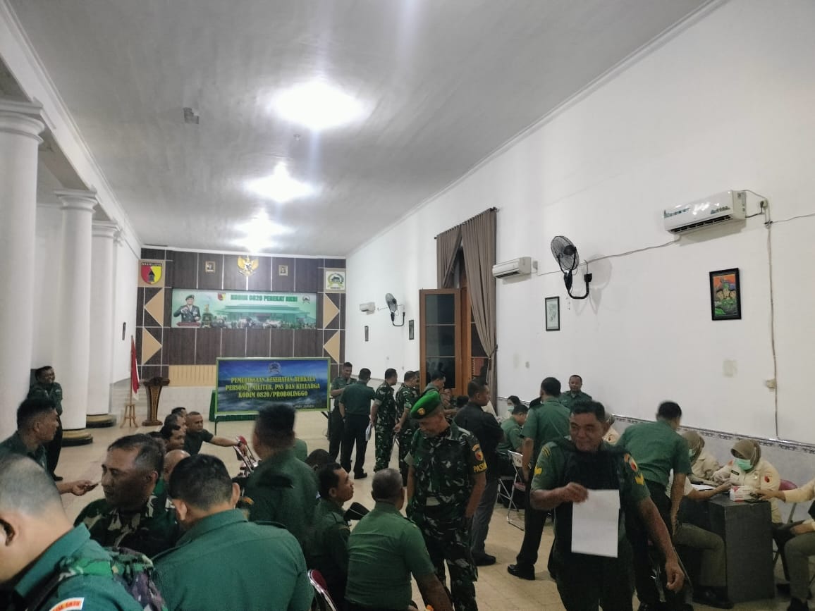 Brilian-news.id | Probolinggo,Bertempat di aula Makodim 0820/Probolinggo, ratusan anggota dan aparatur sipil negara (ASN) di lingkungan Kodim mengikuti kegiatan pemeriksaan kesehatan (Rikkes) berkala, Rabu (22/5).