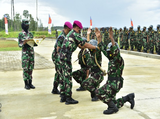 Brilian°Sorong,– Komandan Komando Pembinaan Doktrin Pendidikan dan Latihan TNI AL (Dankodiklatal) Letnan Jenderal TNI Marinir Suhartono membuka program Pendidikan Pertama Bintara (Dikmaba) dan Pendidikan Pertama Tamtama (Dikmata) TNI AL Angkatan XLII di Markas Komando (Mako) Satuan Pendidikan (Satdik)-3 Katapop, Distrik Salawati, Kabupaten Sorong, Papua Barat, Jumat, (25/3/2022).