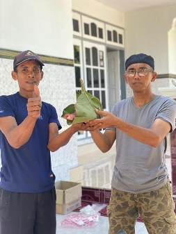 Tidak ingin merusak lingkungan, SDIT AL-HUDA di pulau Bawean, Gresik gunakan daun jati sebagai alternatif pembungkus daging yang ramah lingkungan.