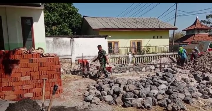 Brilian-news.id | Probolinggo -Koramil 0820/03 Leces melaksanakan program komunikasi sosial (komsos) dengan ikut membantu proses pembangunan lembaga pendidikan di wilayah teritorialnya, Senin (18/9).