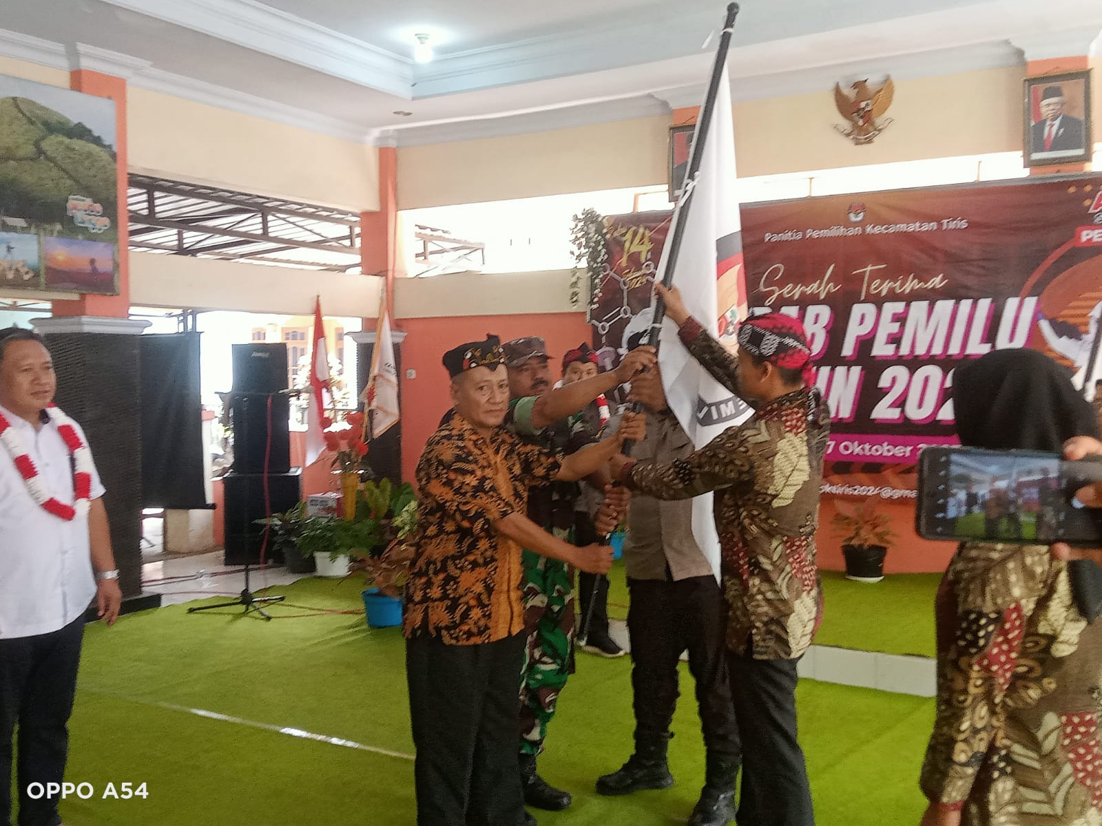 Brilian-news.id | Probolinggo, -Komandan Koramil (Danramil) 0820/24 Tiris Kapten Inf Mohammad Toha bersama jajaran forum kordinasi pimpinan kecamatan serta sejumalah pihak terkait ikut ambil bagian dalam serah terima kirab pemilu tahun 2024 di Kantor Kecamatan Tiris, Minggu (8/10).