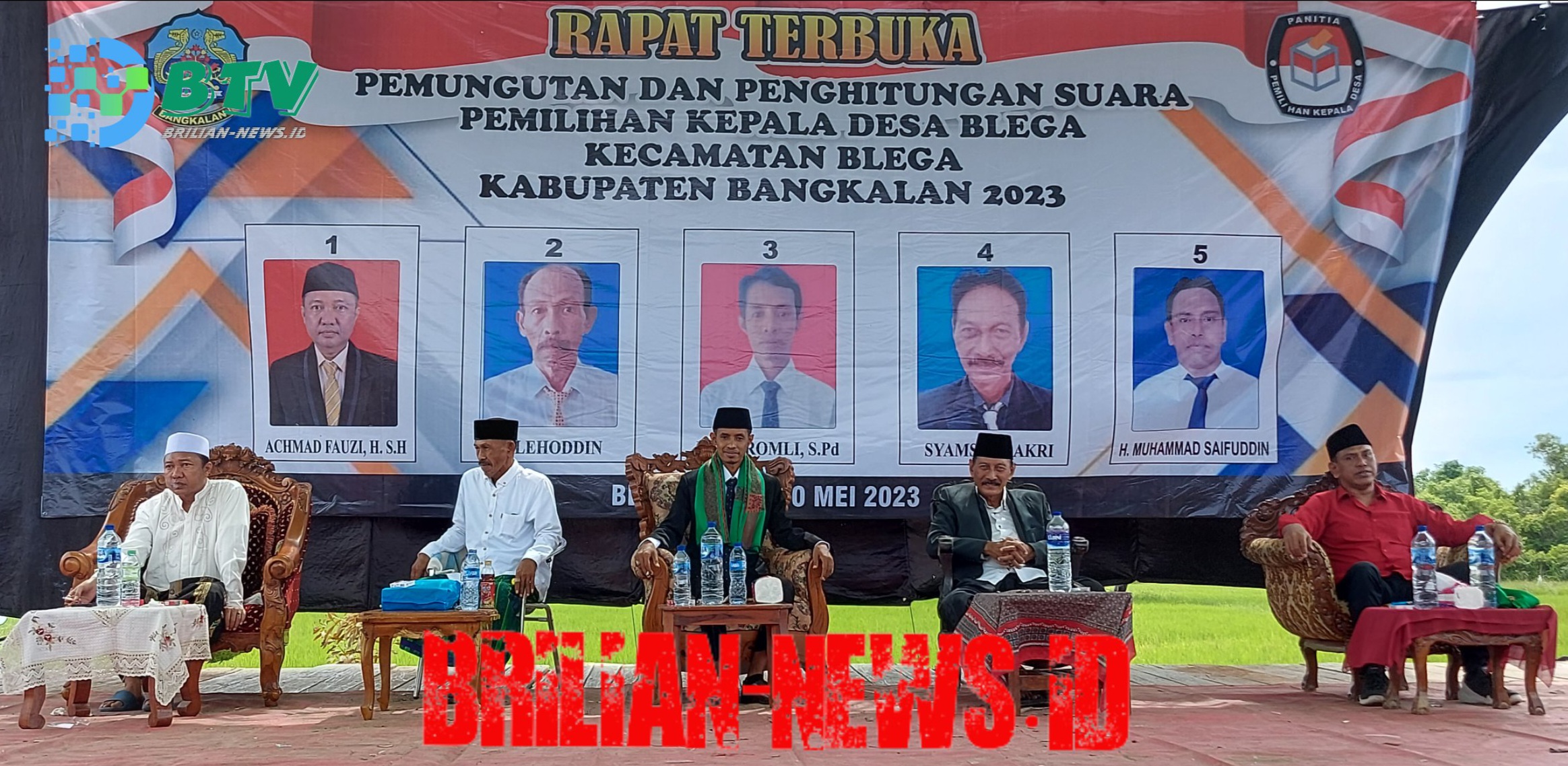 “Ya pastinya, pilkades yang terlaksana pada hari ini, dipilih langsung oleh warga antusias Kec. Blega sebanyak 5.005 jiwa dan yang mana nantinya dari hasil pemilihan tersebut hanya ada satu (1) dari lima (5) calon kepala desa yang terpilih sebagai kepala desa yang baru di kec. blega, antara lain nomor urut 1. Achmad Fauzi,H.S.H, Urut ke 2. Salehoddin, nomor urut 3. Moh. Romli, S.Pd, nomor urut 4. Syamsul Bakri, & nomor urut terakhir 5. H. Muhammad Saifuddin” Pungkas Mujianto Selaku PJ Kepala Desa Blega.
