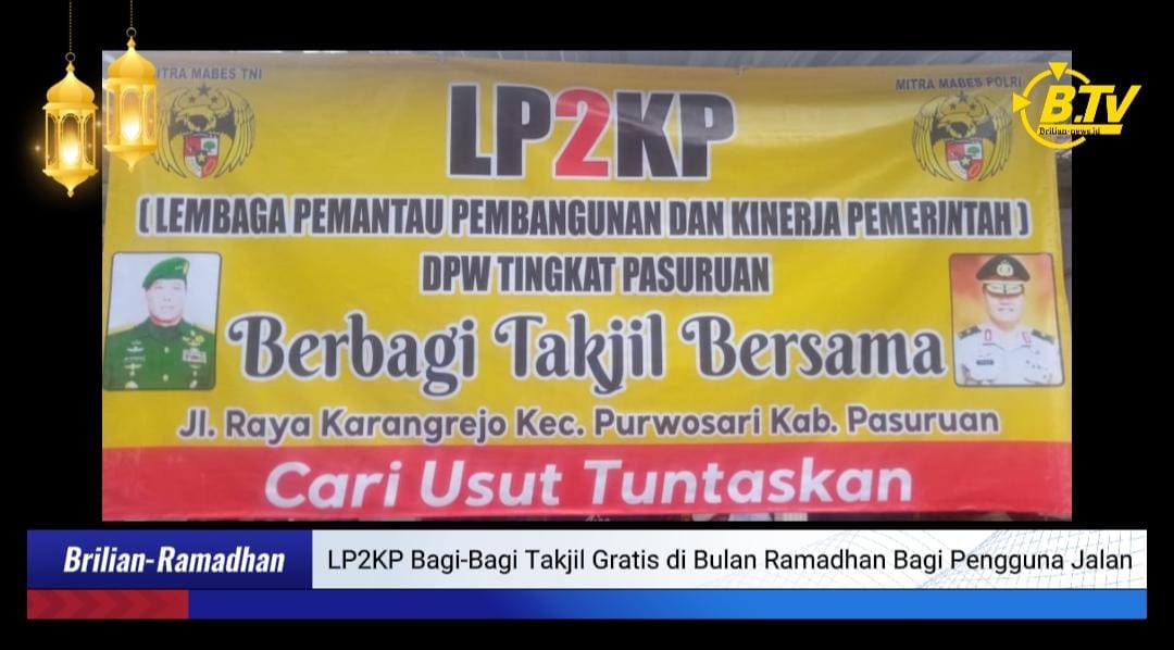 Brilian°Pasuruan – Dewan Perwakilan Wilayah (DPW) Tingkat Pasuruan Lembaga Pemantau Pembangunan Dan Kinerja Pemerintah (LP2KP), Lembaga tersebut merupakan Lembaga yang cukup dikenal dan diapreasi di kalangan masyarkat cukup baik. Di bulan Ramadhan ini mereka mengadakan acara bagi-bagi takjil gratis penuh semangat bagi pengguna jalan di Desa Karang Rejo Damar Jati Kec.Purwosari Kab.Pasuruan, Sabtu 23/04/22.