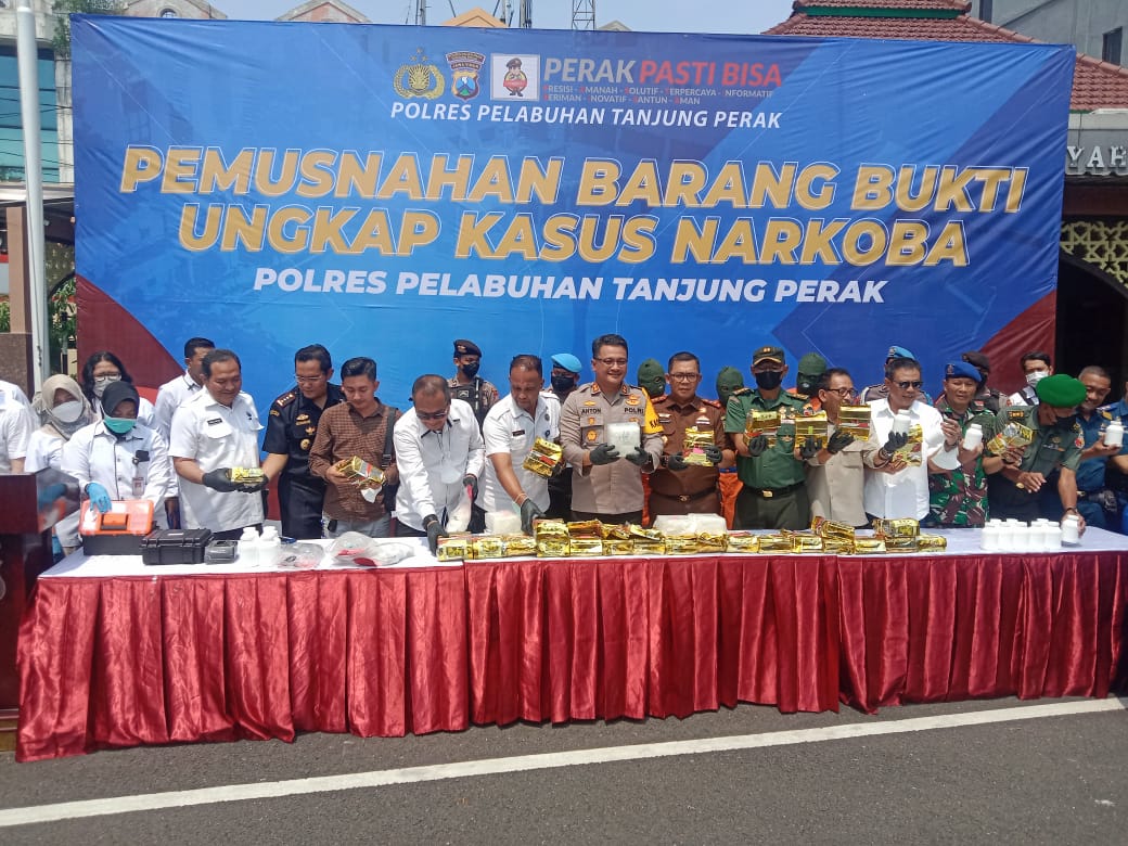 Pemusnahan barang bukti Narkoba tersebut, yang turut di hadiri oleh seluruh tokoh masyarakat dan tokoh agama Polres Pelabuhan Tanjung Perak Surabaya,