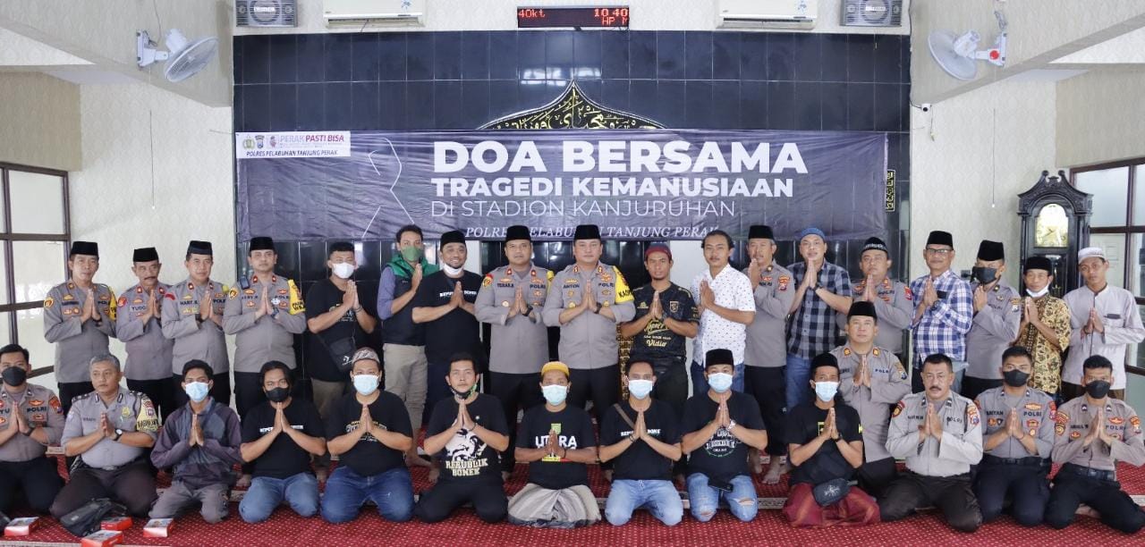 Kegiatan Do’a bersama untuk korban tragedi Stadion Kanjuruhan Malang oleh Polres Pelabuhan Tanjung Perak dan suporter bonek Surabaya Utara beserta PJU Mapolres Tanjung Perak.