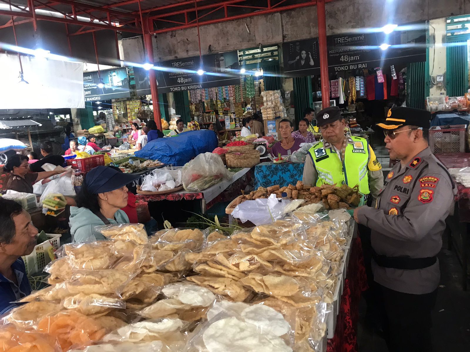 Kapolsek Mengwi turun langsung ke lokasi pasar bersama Bhabinkamtibmas menjelang Nataru mendatang.