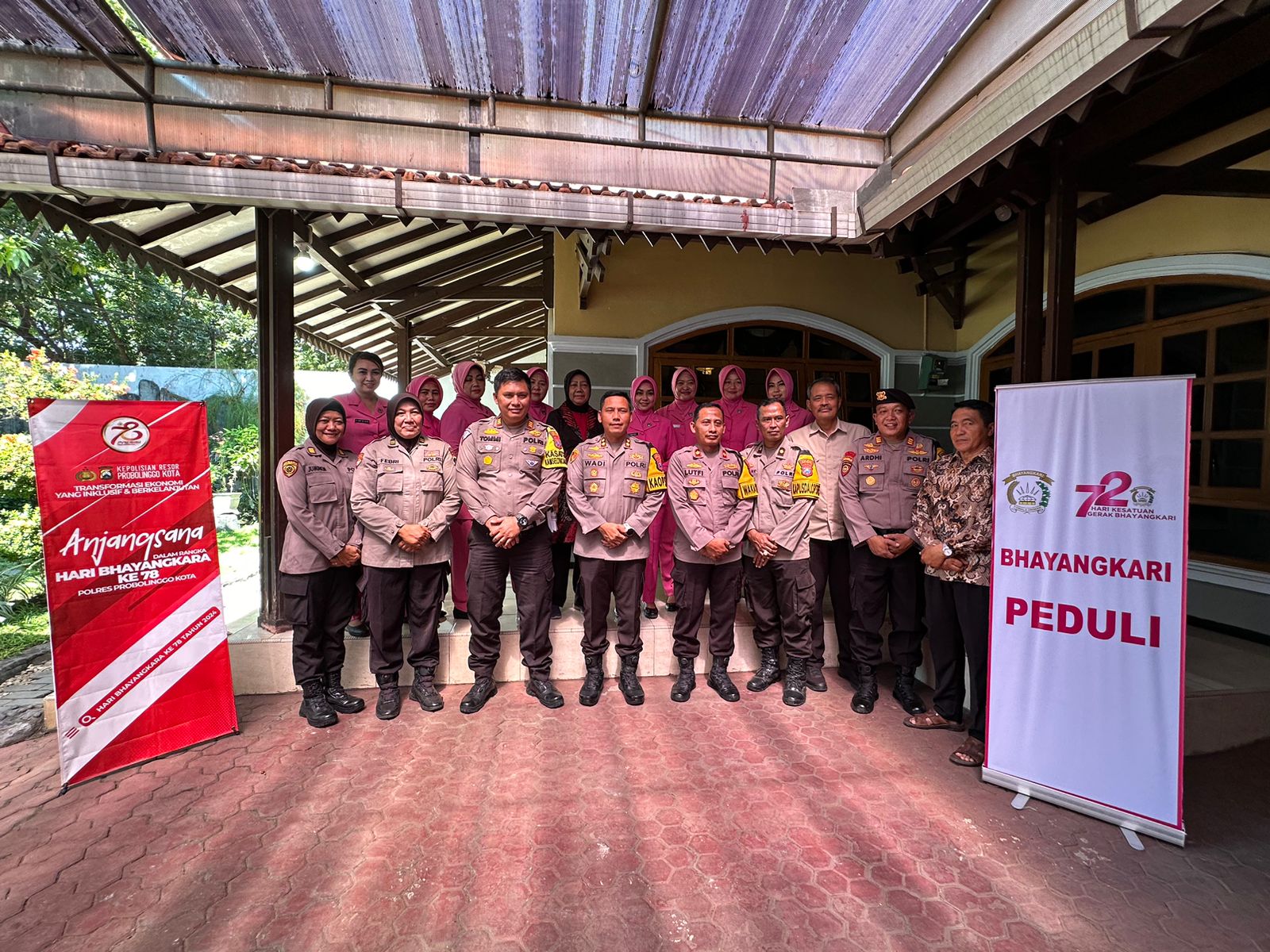 Probolinggo | Brilian-news.id,-Dalam rangka menyambut Hari Bhayangkara ke-78, Kapolres Probolinggo Kota, AKBP Wadi Sa’bani S.H., S.I.K., M.H. bersama Ketua Bhayangkari Cabang Probolinggo Kota Ny Erna Wadi Sa’bani, pejabat utama Polres serta pengurus Bhayangkari Cabang menggelar kegiatan anjangsana kepada purnawirawan dan warakawuri Polri di wilayah Kota Probolinggo