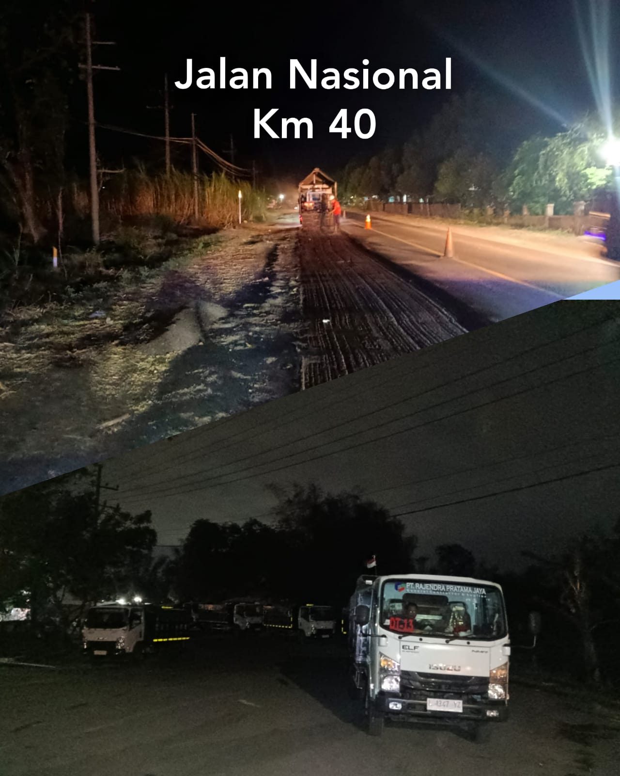 Brilian-news.id | Probolinggo – Kebut target pencapaian Proyek pelebaran ruas jalan nasional di KM 40, PPK. 1.3 gelar pengaspalan pada waktu dini hari 01:10 wib, terpantau di lokasi pengerjaan, _+ 8 dum truk bermuatan aspal terparkir dan sejumlah pekerja yang tampak melakukan aktivitas pembersihan sisa pengerukan Cold milling menggunakan kompresor dengan kondisi minim penerangan dan rambu-rambu yang terpasang. Minggu 23/07/23.