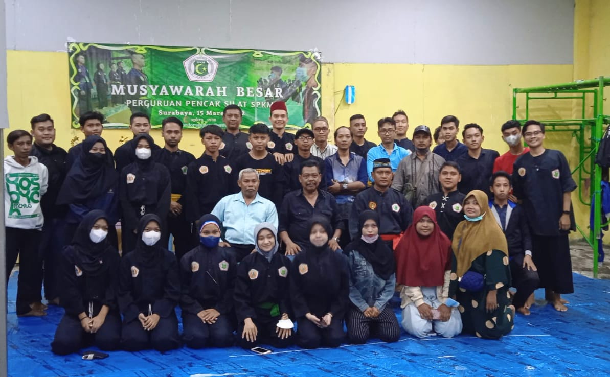 Brilian°Surabaya – Pencak silat merupakan bela diri asli dari nenek moyang bangsa Indonesia. Musyawarah besar perguruan pencak silat SPKM (Surabaya Pencak Kurdo Manyuro) berjalan dengan aman, lancar dan sukses. Dengan tetap mematuhi prokes, pakai masker, cuci tangan dan jaga jarak, sabtu (20/03/2022).