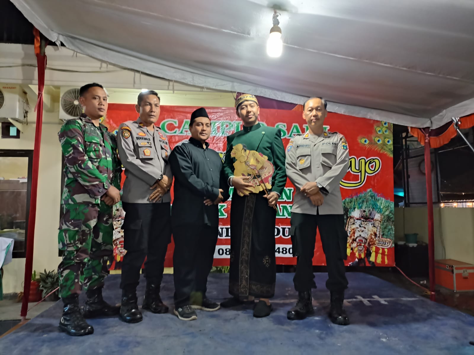 Brilian-News.id | Lumajang,-Kasat Binmas Polres Lumajang AKP Ondik Andrianto menghadiri pagelaran seni wayang kulit di Balai Desa Kunir Kidul, Kecamatan Kunir Kabupaten Lumajang
