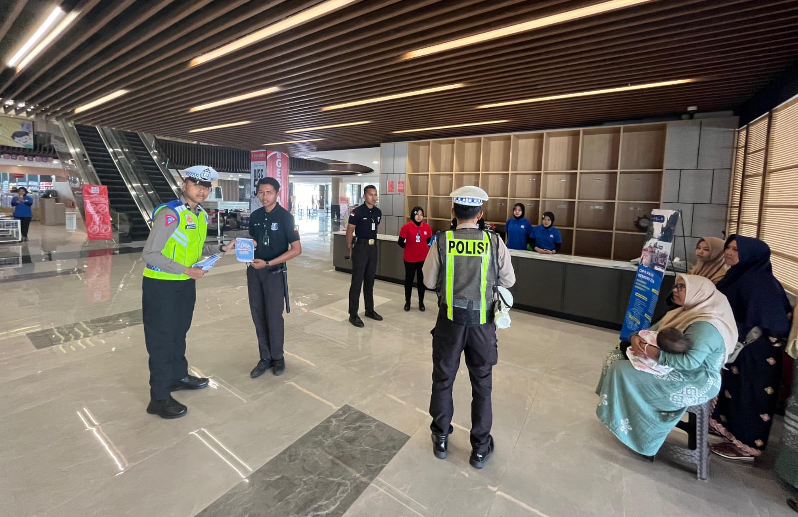 Kepada pengunjung di pusat perbelanjaan, petugas menghimbau agar menjadikan tertib berlalulintas sebagai budaya.