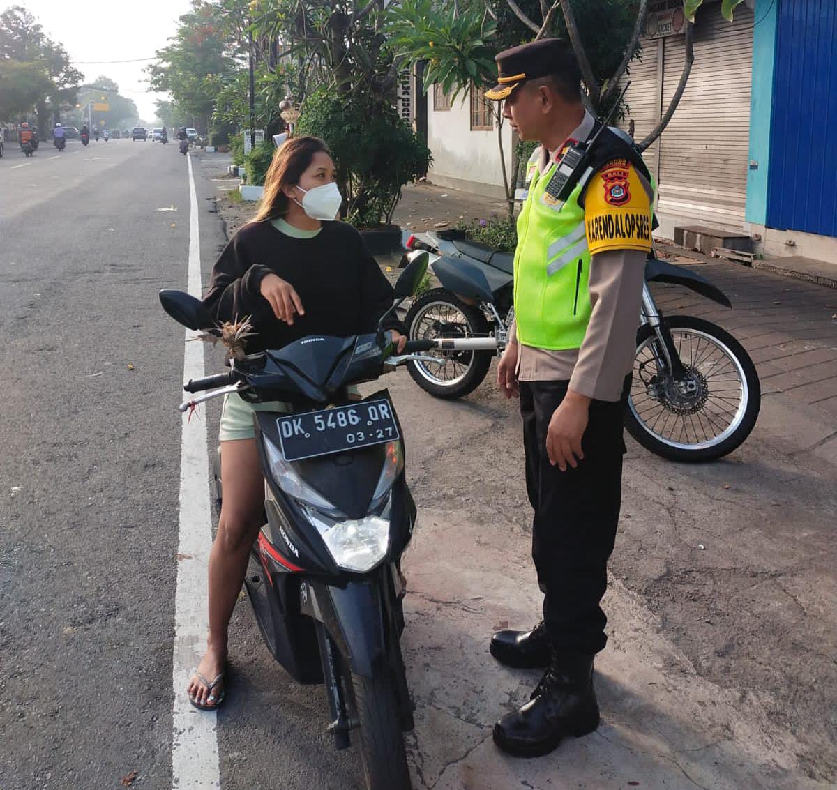 Brilian-news.id | Bali – Kabag Ops Polres Badung Kompol I Gede Made Surya Atmaja. P, S.Sos, MH pagi-pagi menegur pengendara sepeda Motor tanpa helm di Simpang Sempidi, Kelurahan Sempidi, Kecamatan Mengwi, Kabupaten Badung, Bali. Senin, (14/8) pagi pukul 07.20 WITA. Sekaligus cek kesiapan personil yang terlah tegelar untuk mengatur arus lalu lintas.
