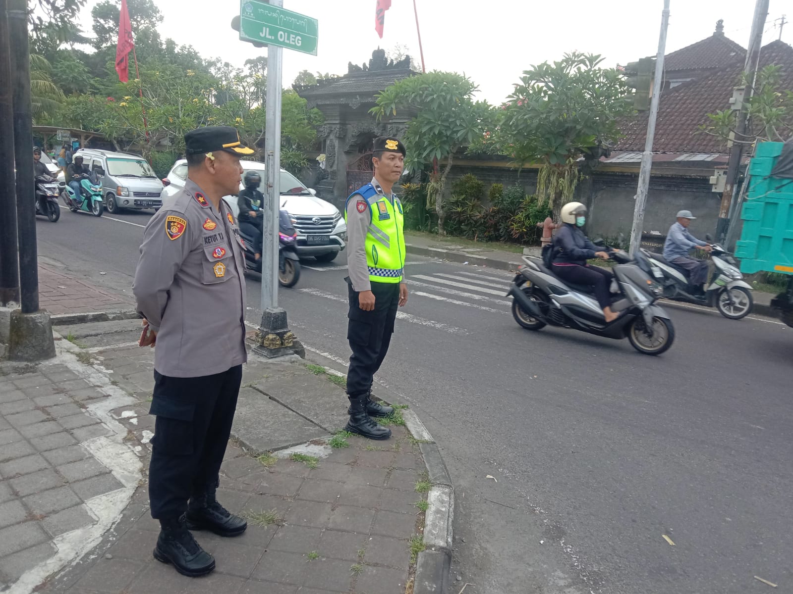 Brilian-news.id | Bali – Polsek Mengwi untuk memastikan arus lalulintas berjalan dengan lancar Kapolsek Mengwi Kompol I Ketut Adnyana T.J S.Sos.,S.H.,M.M., melaksanakan pengecekan PH Pagi di simpang empat Penarungan lingkungan Banjar Dangin Peken, Desa Penarungan, Kecamatan Mengwi, Kabupaten Badung, Bali. Selasa (12/9/2023) pukul 07.00 wita.