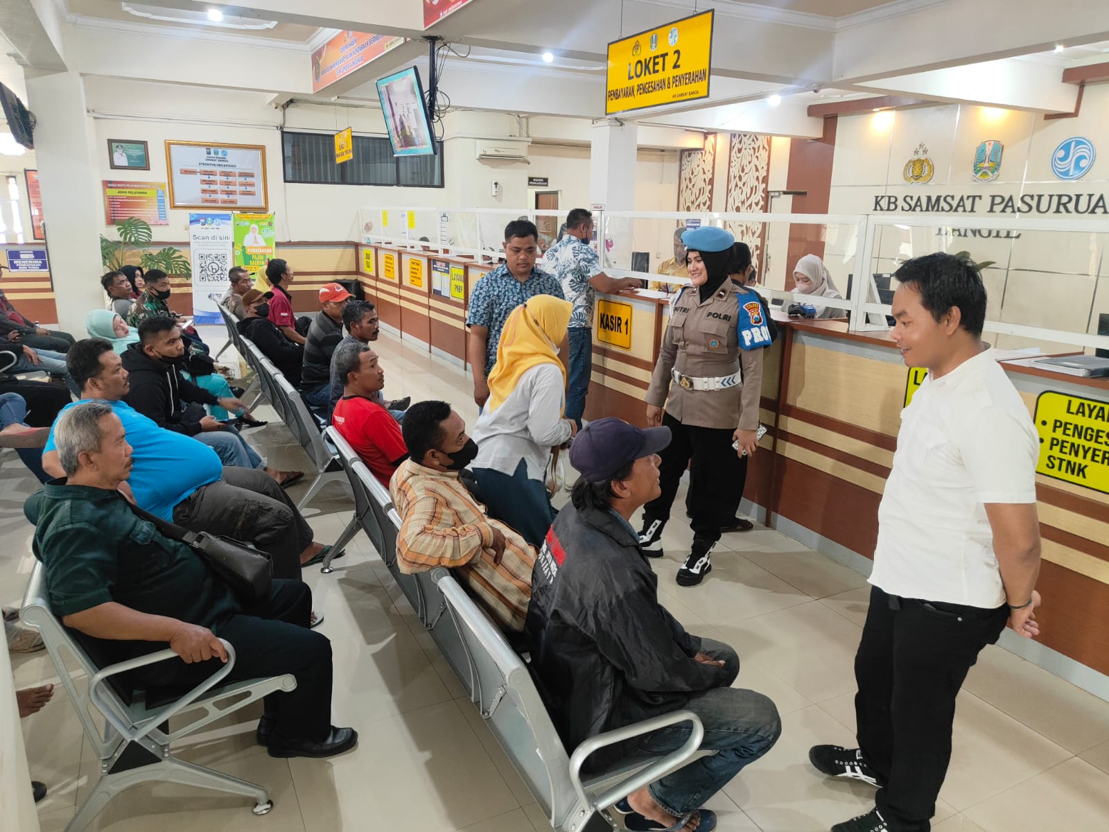 AKP Wiksan saat di temui awak media menyampaikan, terkait kegiatan yang dilakukan anggota siepropam pagi ini, dan kegiatan ini akan rutin dilaksanakan setiap hari imbuhnya. Salah satu wajib pajak, Supali warga desa Dayu Kecamatan Prigen saat ditanya awak media terkait kegiatan ini menyatakan sangat puas dengan pelayanan yang dilakukan anggota polri yang berada di samsat bangil, karena yang bersangkutan kebetulan melakukan proses balik nama kendaraan Rada dua di samsat bangil. “supali menyampaikan ke pada awak media sebagai masyarakat pasuruan saya berterima kasih kepada kapolres pasuruan yang sudah menghadirkan pelayanan kepada masyarakat bebas KKN.
