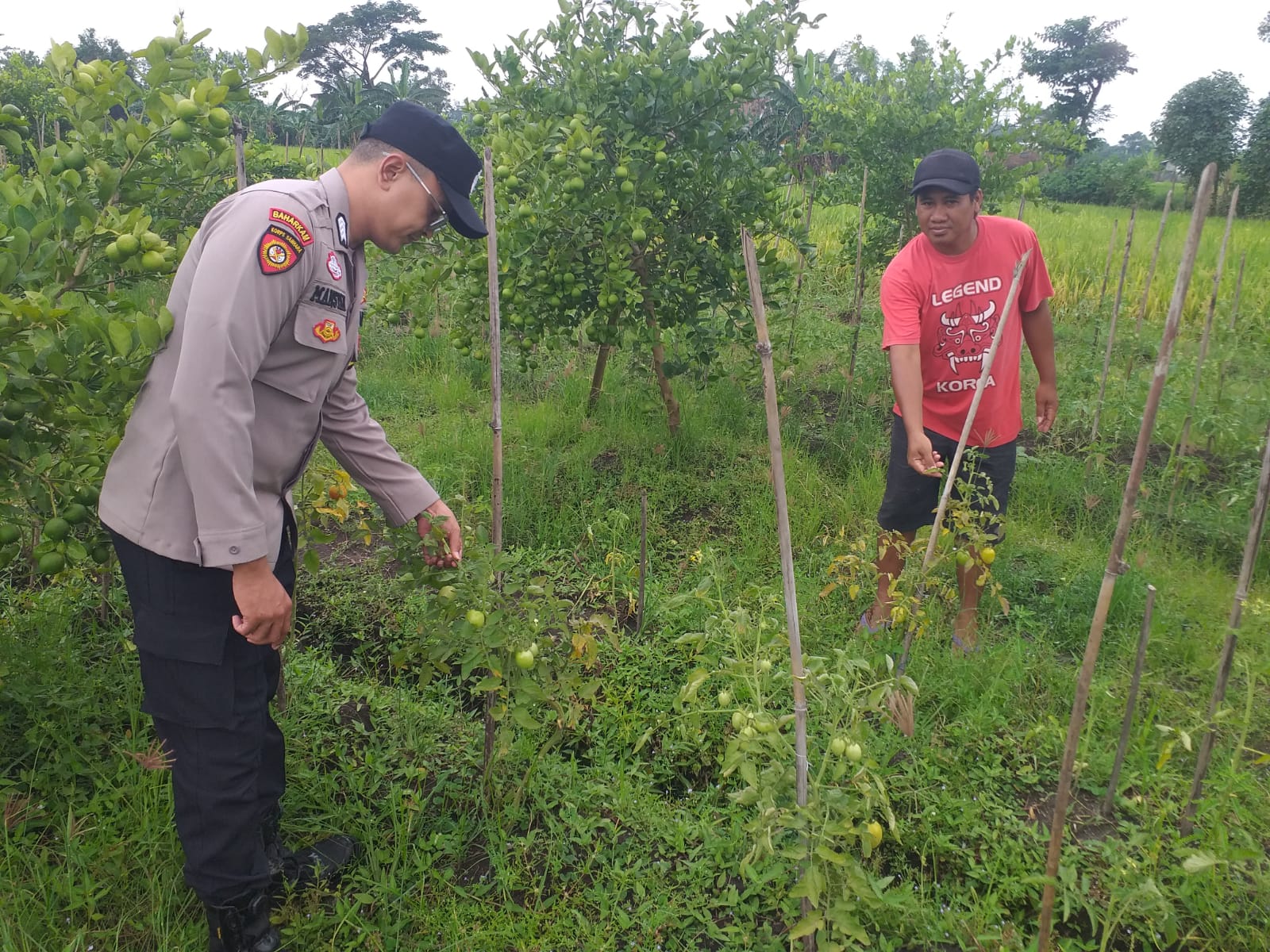 Dalam kegiatan ini, Bhabinkamtibmas Polsek Pandaan Brigadir Hermansyah, SH bersama Plt. Panit 2 Binmas Aiptu Anang Prasetyo berdialog dengan para petani untuk mengetahui kendala yang dihadapi dalam budidaya jeruk.