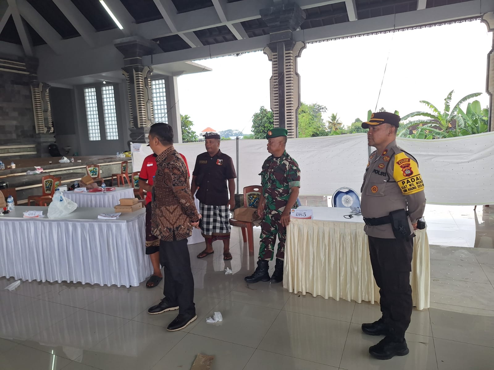 Brilian-news.id | BALI – Kepala Kepolisian Sektor Mengwi Kompol I Ketut Adnyana T.J S.Sos.,S.H.,.M.M., bersama Danramil 1611-04 Mengwi Kapten Kav. I Ketut Darmawan dan Camat Mengwi I Nyoman Suhartana SSTP.,M.M.,melaksanakan pemantauan TPS tahap penghitungan surat suara, seperti terpantau di TPS 32 Kapal lingkungan Banjar Belulang, Kelurahan Kapal, Kecamatan Mengwi, Kabupaten Badung, Bali. Rabu (14/2/2024) pukul 17.43 Wita.