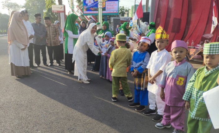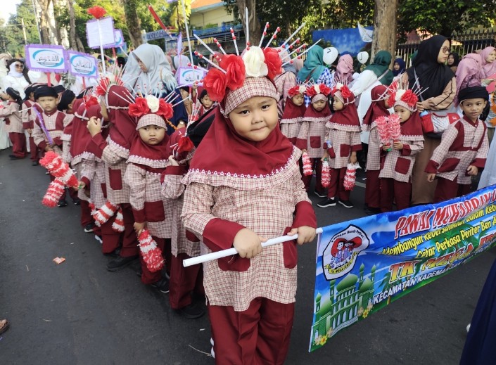 Setiap langkah yang mereka ambil menggambarkan semangat kebersamaan dan kebahagiaan. Tak hanya anak-anak, para orang tua dan guru pun turut serta, memberikan semangat dan memastikan pawai berjalan lancar.