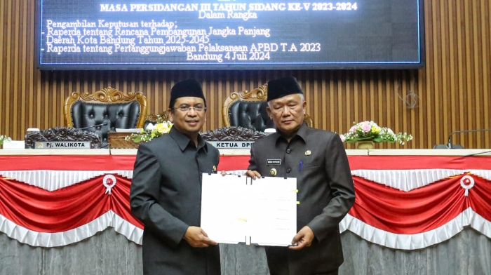 Ketua DPRD Kota Bandung, Tedy Rusmawan, mengungkapkan, dua Raperda yang disetujui adalah Raperda tentang Rencana Pembangunan Jangka Panjang Daerah (RPJPD) Kota Bandung Tahun 2025-2045 dan Raperda tentang Pertanggungjawaban Pelaksanaan Anggaran Pendapatan dan Belanja Daerah (APBD) Tahun 2023.