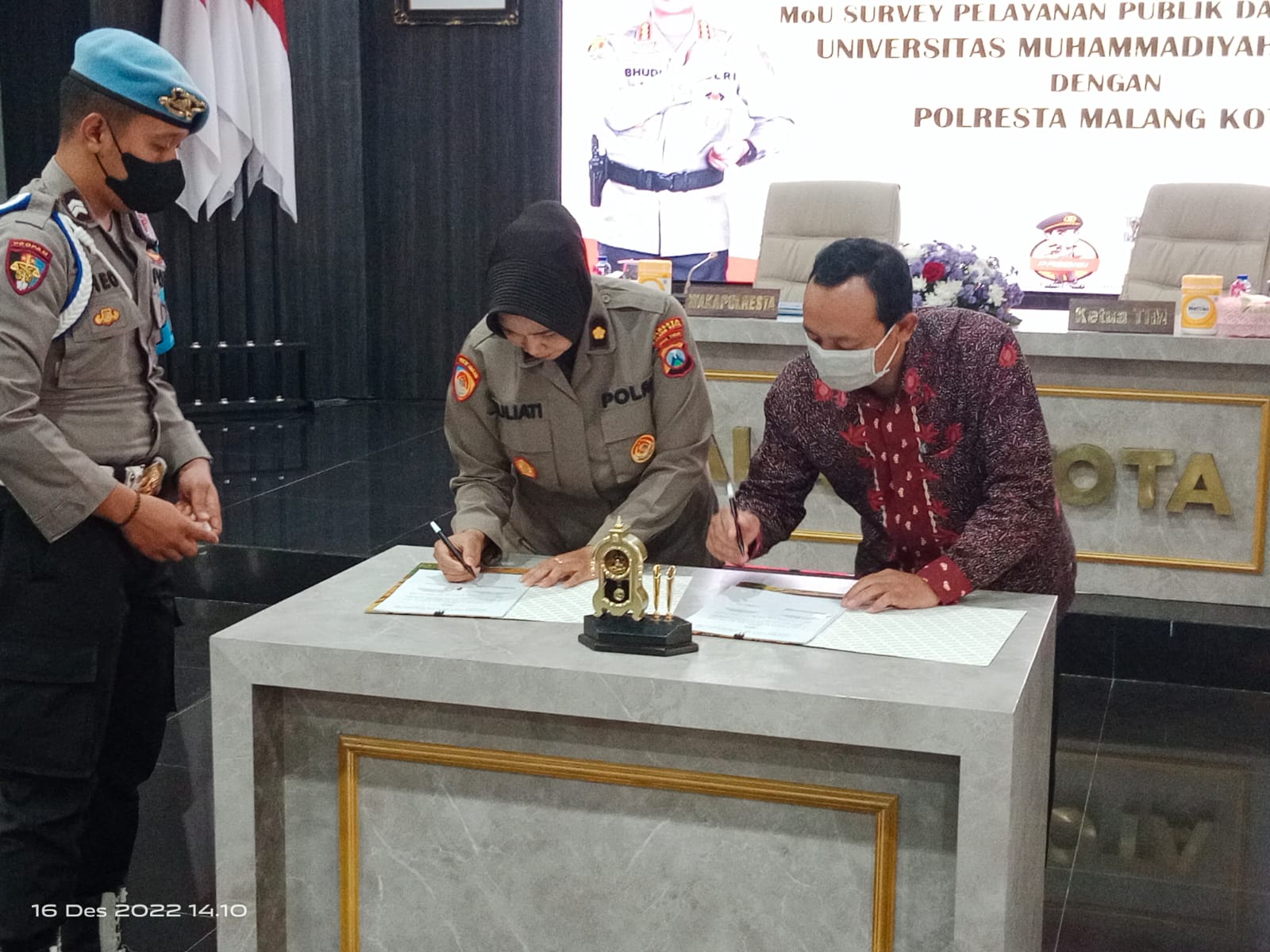 Pelaksanaan penandatanganan MoU survey pelayanan publik dan ITK online Universitas Muhammadiyah Malang bersama Polresta Malang Kota dan juga PJU kota Malang.