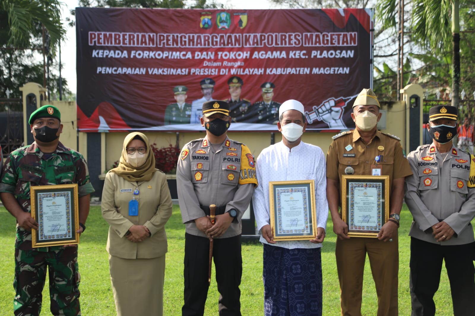 Atas capaian itu, pihaknya memberi penghargaan yang diserahkan langsung kepada Forkopimcam Plaosan dalam upacara penghargaan yang digelar di halaman mapolres, Senin (21/3/2022) pagi.