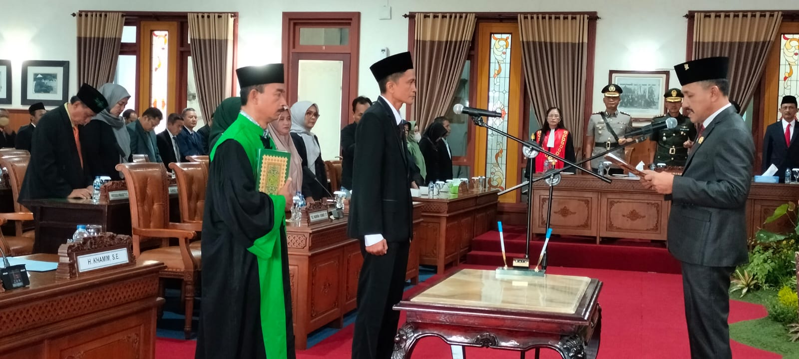 Untuk selanjutnya, sesuai keputusan Gubernur Jawa Timur Nomor 171.407/290/011.2/2023 tentang peresmian pengangkatan PAW anggota DPRD Kabupaten Tulungagung, meresmikan dengan hormat pengangkatan H.Khamim, S.E. SE sebagai PAW anggota DPRD Kabupaten Tulungagung sisa masa jabatan tahun 2019- 2024, terhitung mulai tanggal pengucapan sumpah janji.