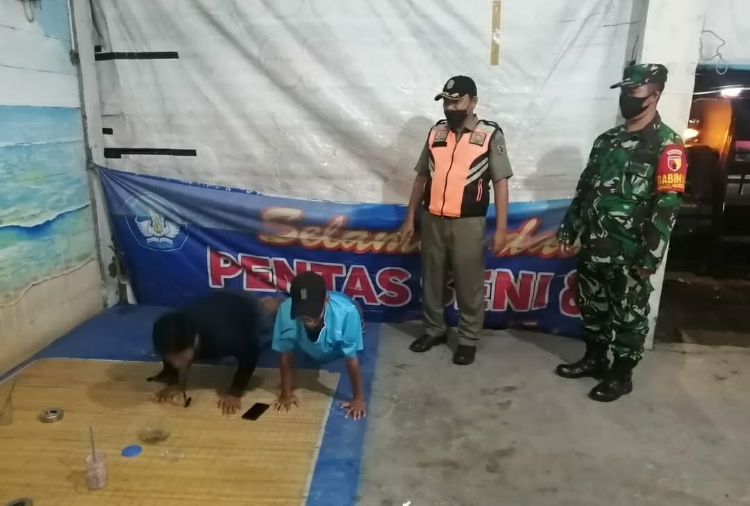 Dari hasil yustisi penindakan protokol kesehatan ” telah dilakukan tindakan kepada pelanggar dengan Sanksi Sosial berupa push up ditempat kepada 2 Orang pelanggar dan diberikan teguran kepada 4 orang tidak memakai masker”ucapnya.