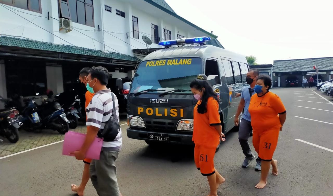 Penyidik Satreskrim Polres Malang menyerahkan 3 orang sebagai tersangka, adapun ketiga tersangka terdiri dari dua perempuan berinisial FRA (31) dan DTM (31), serta seorang pria berinisial RP (25).