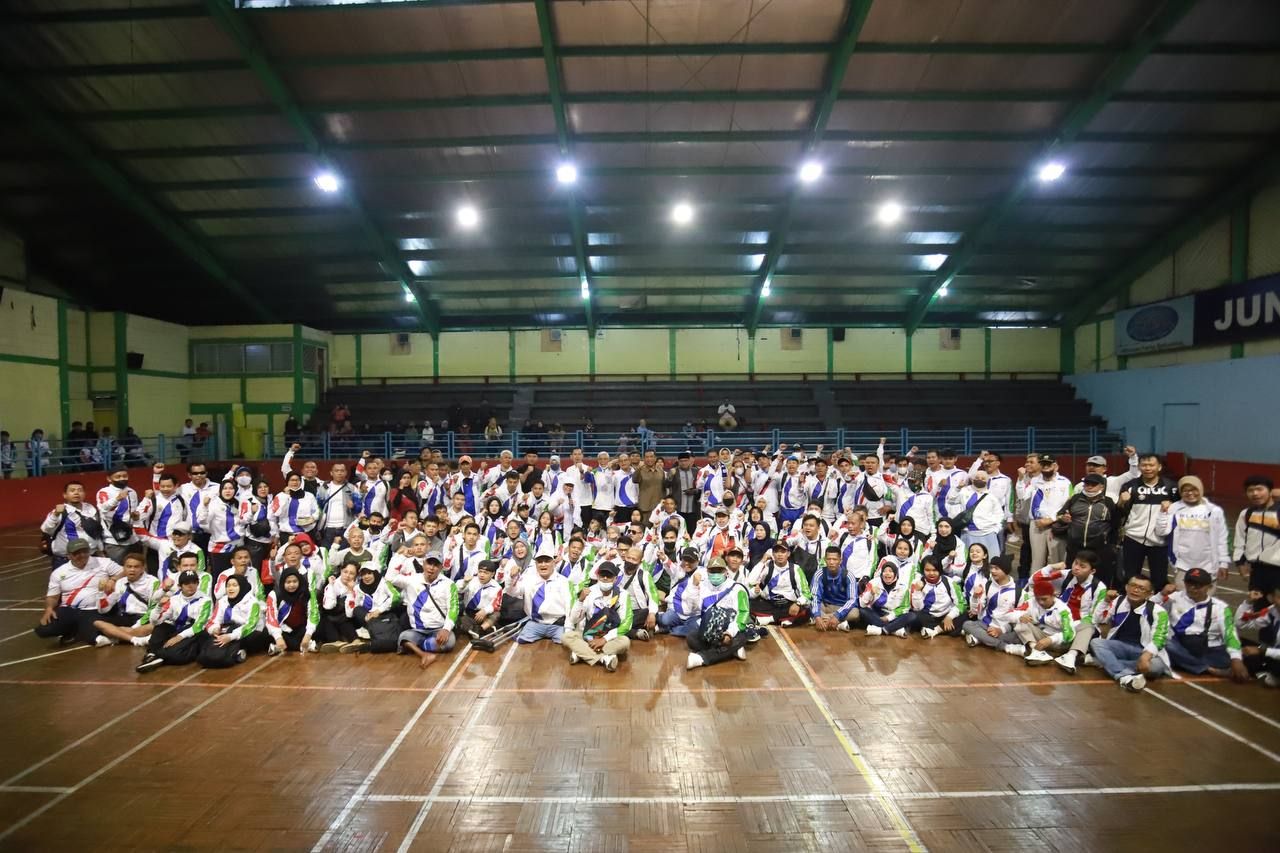 Brilian•Bandung – Ketua DPRD Kota Bandung H. Tedy Rusmawan, A.T., M.M., beserta Anggota Komisi D H. Andri Rusmana, S,Pd.I., melepas keberangkatan kontingen NPCI Kota Bandung menuju Peparda VI Jawa Barat 2022, di GOR Tri Lomba Juang Pajajaran, Bandung, Senin (21/11/2022).
