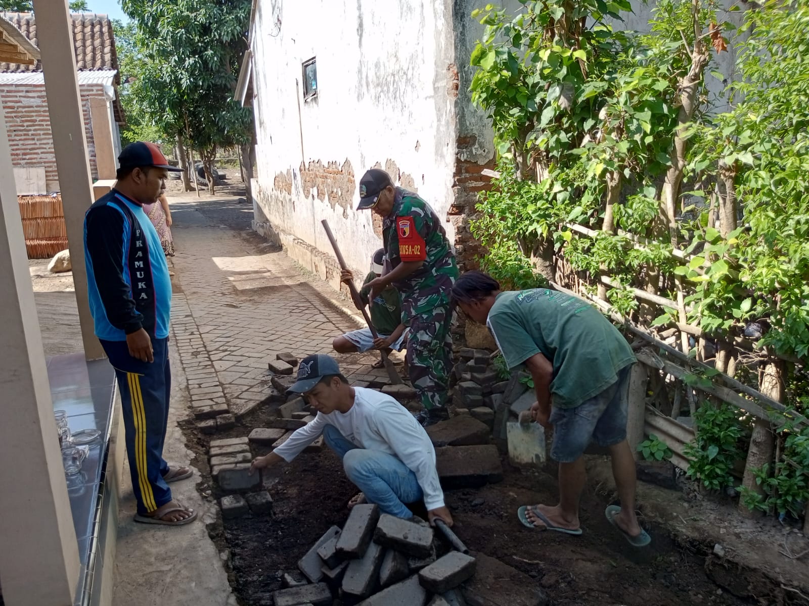 Seperti halnya yang dilakukan, Babinsa Koramil 0820/ 02 Wonoasih Serka Rahmad bersama warga melaksanakan kerja bakti pemasangan Paving Block di RT 01 / RW 01 kelurahan Jrebeng Kulon Kecamatan Kedupok Kota Probolinggo. Kamis(28/12)
