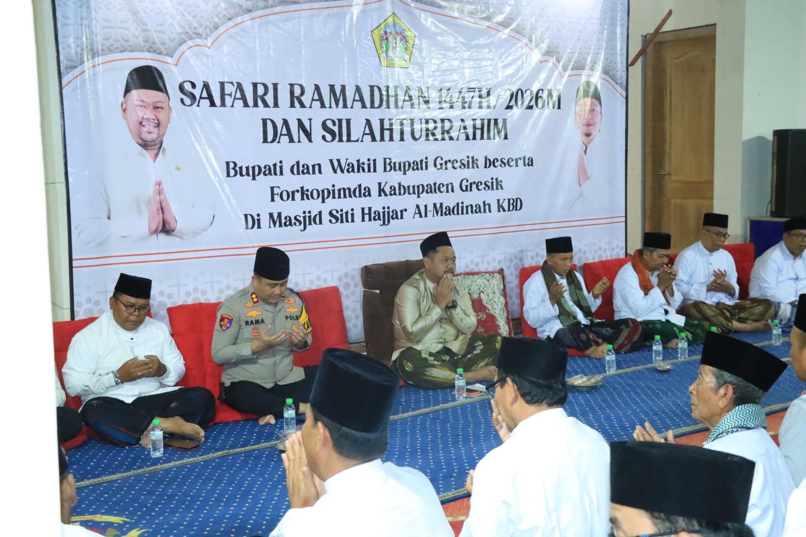 GRESIK ° Brilian news.id – Memasuki bulan suci Ramadan 1447 H, Pemerintah Kabupaten Gresik kembali memperkuat sinergi dengan masyarakat melalui agenda rutin Safari Ramadan. Pada Senin sore (02/03/2026), Masjid Siti Hajar Al-Madinah, KBD, Desa Petikan, Kecamatan Driyorejo, menjadi titik berkumpulnya jajaran pimpinan daerah dalam bingkai silaturahmi dan ibadah bersama.