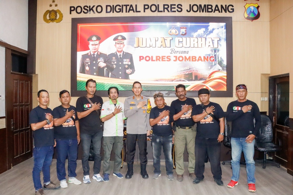 Kegiatan Jumat curhat bertempat di Ruang Jombang Command Center (JCC) Polres Jombang, Jumat (21/7/2023). Dihadiri Kapolres Jombang AKBP Eko Bagus Riyadi, Kasat Intelkam Budi Santosa, ketua FRMJ Joko Fattah Rochim, ketua Spekal Jombang Agus bersama pengurusnya.
