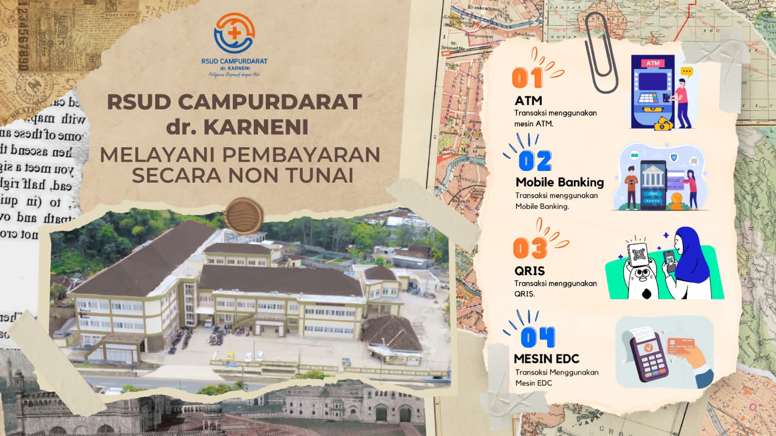 RSUD Campurdarat dr. Karneni juga bekerja sama dengan berbagai penyedia layanan pembayaran digital untuk memastikan transaksi dapat dilakukan dengan berbagai metode yang tersedia di masyarakat.