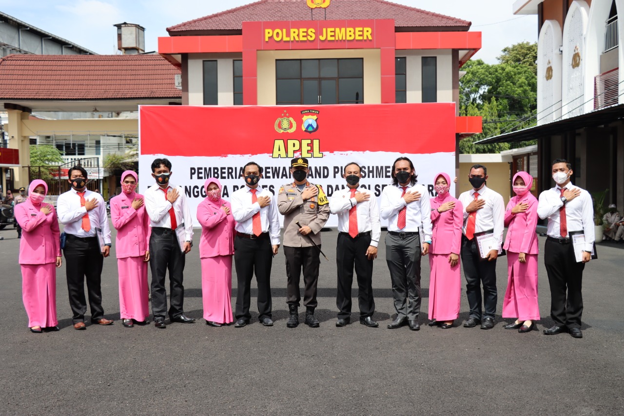 “Melalui penghargaan dan punishment ini, diharapkan dapat lebih memacu semangat kerja kita untuk berprestasi serta dalam melakukan peningkatan kualitas pelayanan publik Polres Jember,” pesan Kapolres Jember,”Tukasnya.