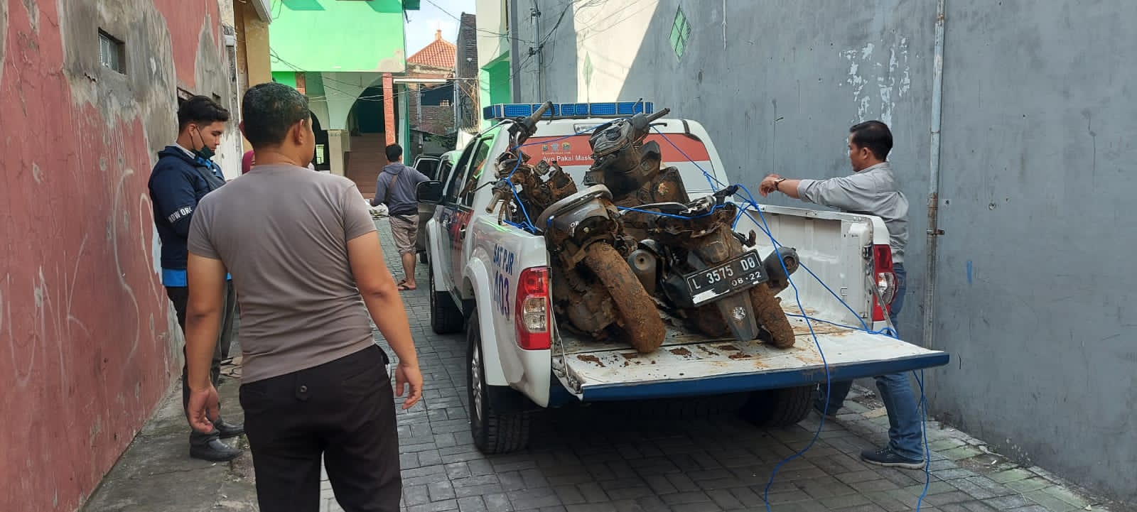 “Saya mengucapkan terimakasih kepada bapak – bapak Polisi yang tanpa kami duga sudah mau mengantarkan kedaraan milik adik say aini,meskipun kondisinya rusak parah tertutup lumpur,”ungkapnya.