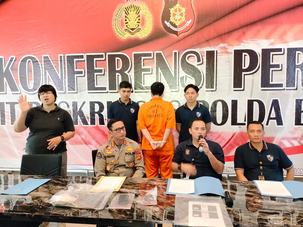 Brilian-news.id | Bali – Konfrensi Pers di lobi Reskrimsus, Kabid Humas Kombes Pol Jansen Avitus Panjaitan S.I.K., M.H., di dampingi Wadir Reskrimsus AKBP Renefli Dian Candra S.I.K, M.H., dan Kasubdit Siber AKBP Nanang Prihasmoko S.T., S.H., M.H., di depan para awak media menyampaikan, Polda Bali telah berhasil pengungkapan kasus Carding yang dilakukan oleh seorang residivis, jumat (28/7/2023).