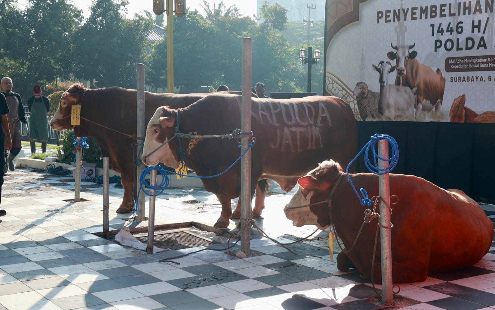Pada puncak kegiatan yang berlangsung hari Jumat (6/6/2025), Polda Jatim sendiri menyembelih 10 ekor sapi dan 5 ekor kambing di Mapolda.