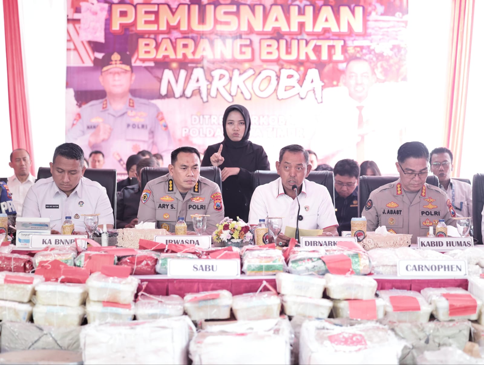 Barang bukti yang dimusnahkan mencakup, Sabu: 49.054,582 gram, Ekstasi: 2.860 butir, Carnophen (Pil dobel L): 1.077.840 butir, Okerbaya: 5.688.600 butir.