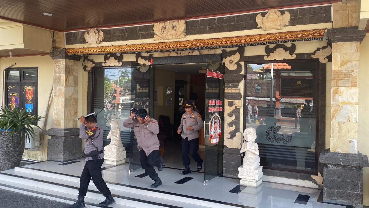 Brilian-news.id | BALI – Mapolres Badung pada Sabtu (26/4/2025) diguncang gempa bumi cukup dahsyat. Semua anggota yang masih berada di dalam markas dengan tiga lantai itu pun berhamburan keluar sembari mengamankan kepala dari reruntuhan.