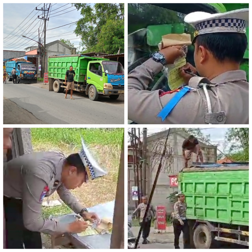Jalur yang sebelumnya menjadi akses jalan desa pun kini tak luput dari pantauan petugas. Beberapa truk dump bermuatan tanah uruk diberhentikan, dan para sopir mendapat himbauan serta teguran dari Kanit Lantas.