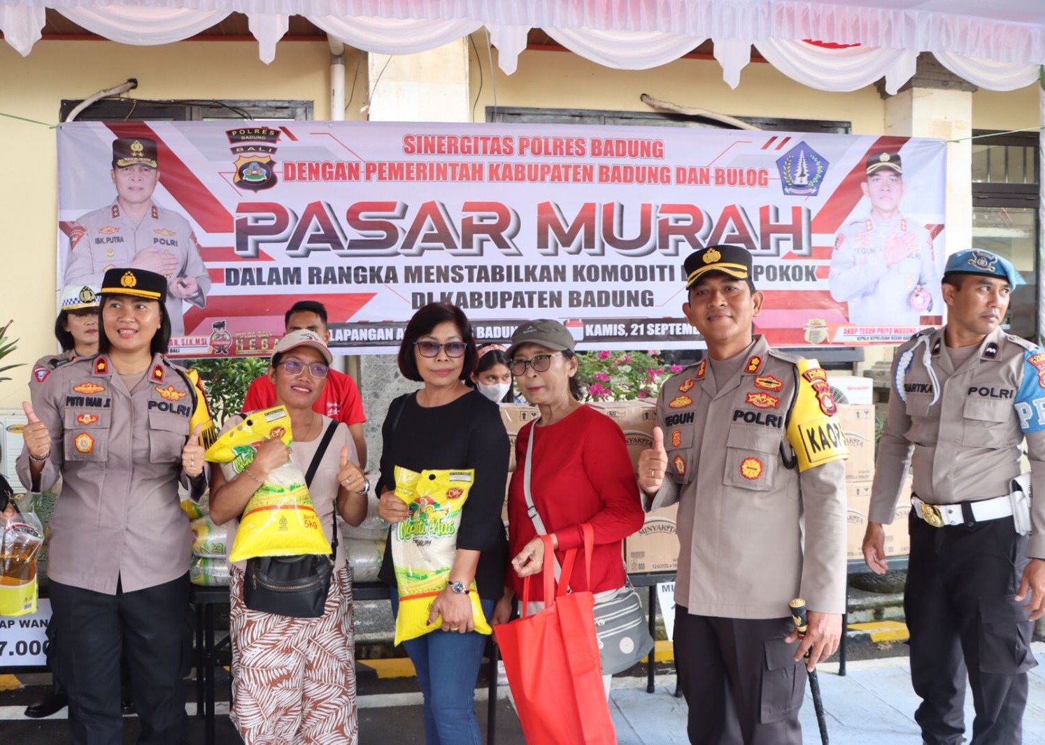 “Kegiatan pasar murah ini salah satu bentuk upaya Polres Badung dan Pemerintah Kab. Badung dalam menjaga stabilitas komoditi dan berupaya membantu masyarakat dalam mencari bahan pokok yang lebih terjangkau.”Ungkap AKBP Teguh Priyo Wasono, S.I.K. didampingi Kepala Bulog Divre Bali Sony Supriyadi, Kepala Dinas Koprasi, UMKM dan Perdagangan Kab. Badung I Made Widiana S.Sos, Wakapolres Kompol Putu Diah Kurniawandari, S.H., S.I.K., M.H. dan PJU Polres Badung.
