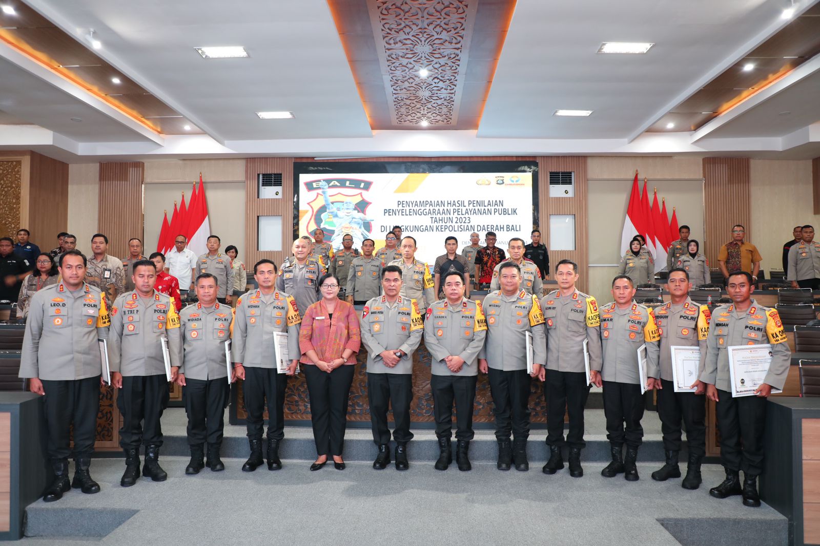 Wakapolda Bali, Pejabat Utama (PJU) Polda Bali dan Kapolres/Ta juga turut hadir dalam Acara Penyampaian Hasil Penilaian Penyelenggaraan Pelayanan Publik Tahun 2023 oleh Kepala Ombudsman Republik Indonesia Perwakilan Bali.
