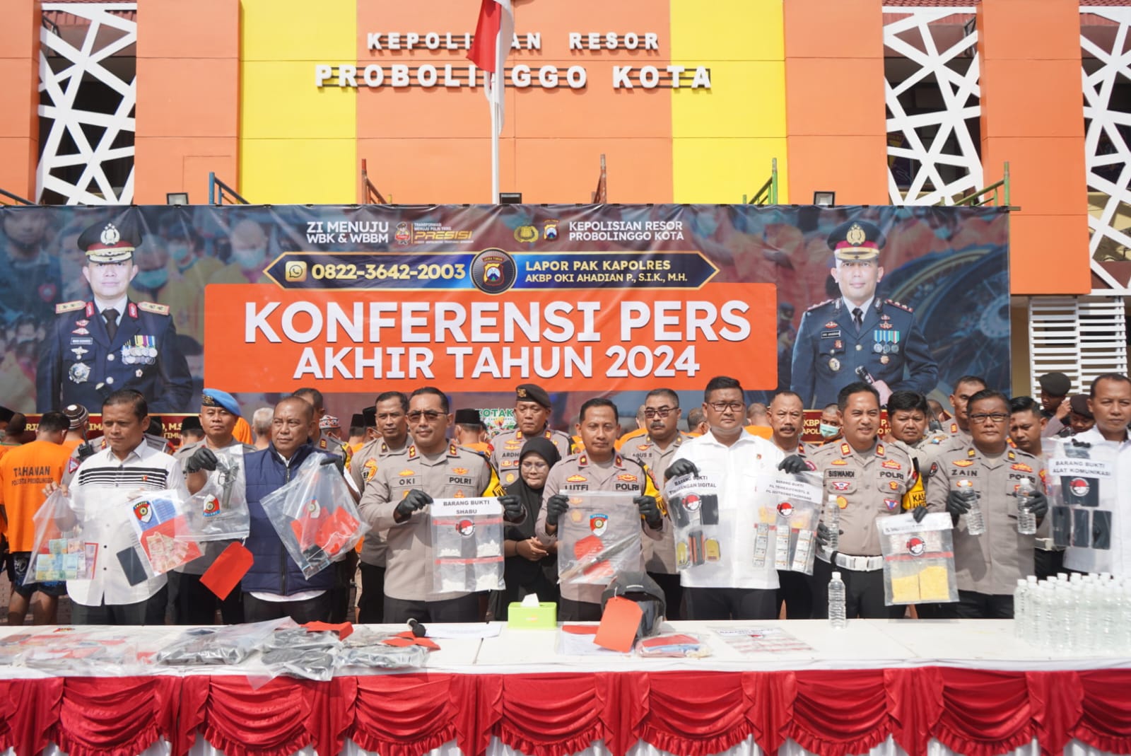 Probolinggo Kota | Brilian-news.id,-Angka kejahatan di wilayah hukum Polres Probolinggo Kota sepanjang 2024 turun signifikan dibandingkan tahun 2023. Hal tersebut disampaikan oleh Kapolres Probolinggo Kota AKBP Oki Ahadian P. S.I.K., M.H dalam kegiatan konferensi pers akhir tahun pada Senin (30/12/2024) pagi.