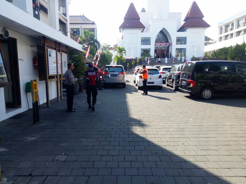 Kapolsek Kuta Kompol Yogie Pramagita, S.H., S.I.K., M.H., yang dikonfirmasi terpisah mengatakan bahwa, dalam pelaksanaan pengamanan ibadah rutin umat Kristiani di Gereja diwilayah hukum, personil sudah digelar baik dalam pengamanan terbuka maupun tertutup.